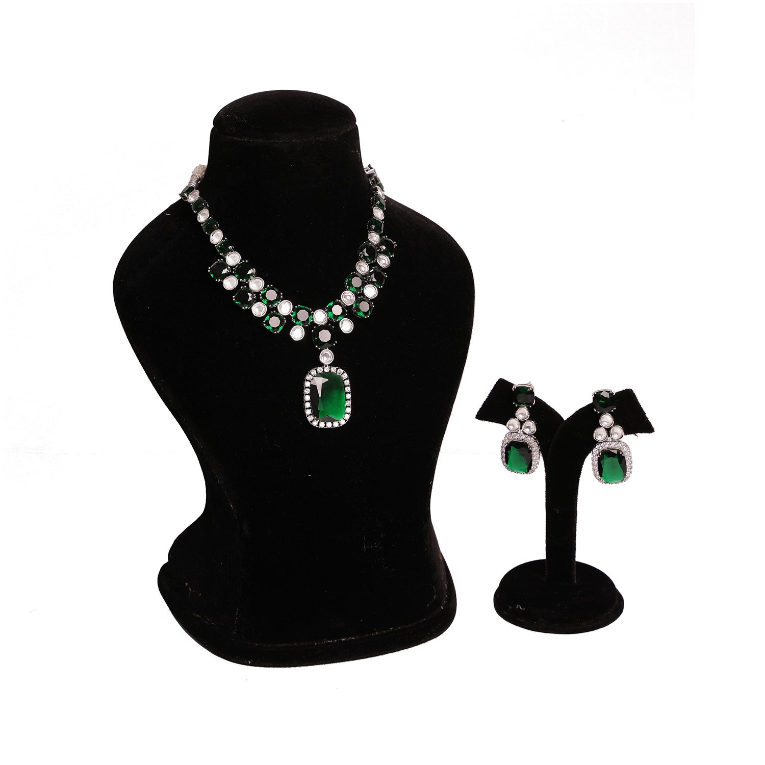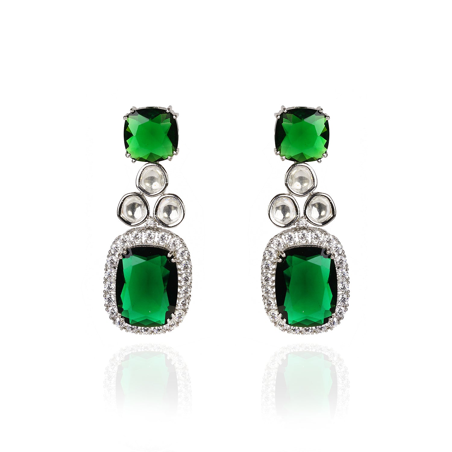 Elegant and architecturally refined, Marquise Verde Radiance Set is crafted to reflect modern bridal sophistication. Featuring striking emerald doublet stones arranged in a structured square setting, this piece radiates luminous depth against its polished silver base.