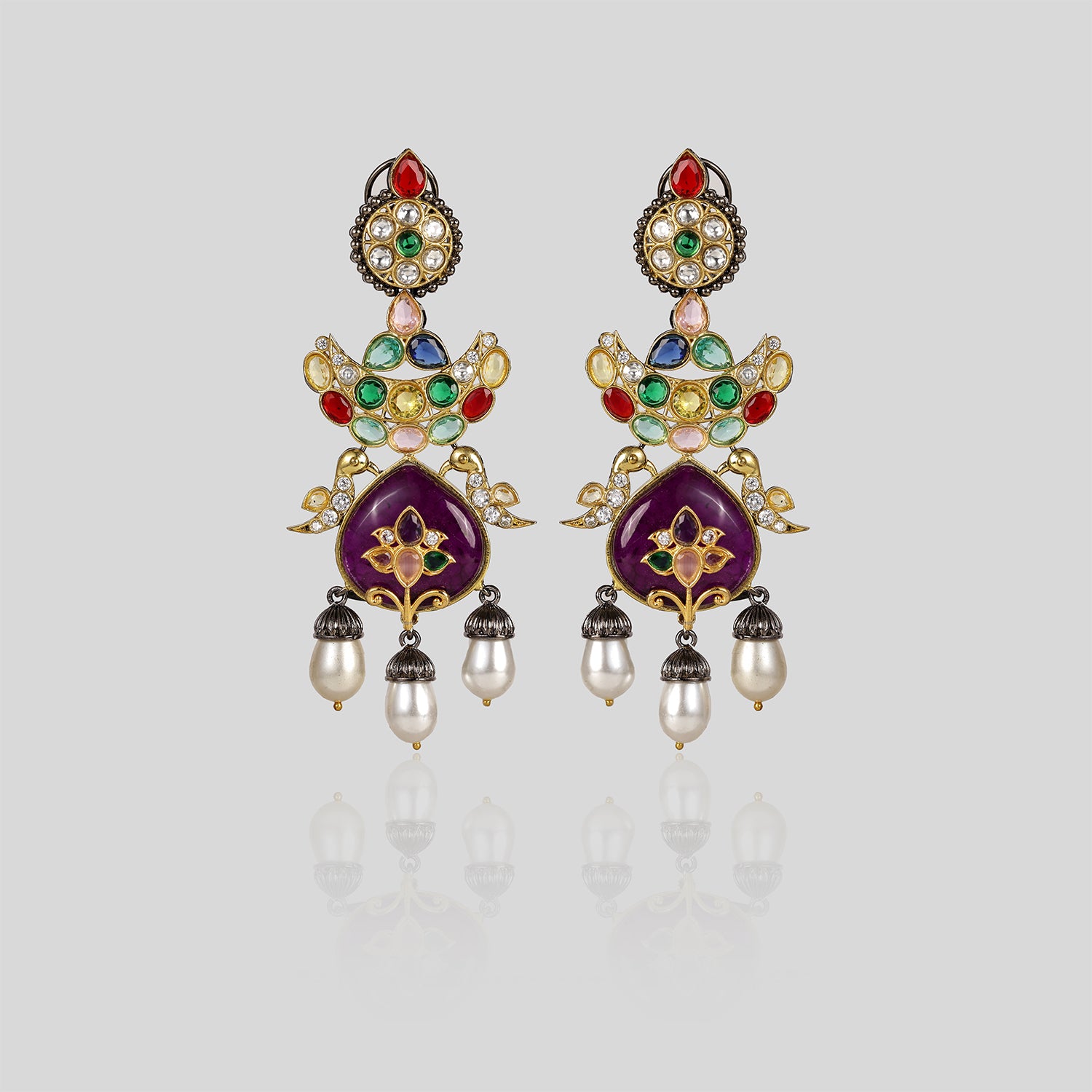 Perfectly suited for bridal lehengas, silk sarees, and traditional couture, these danglers add regal vibrance and timeless elegance to every ceremonial moment.
