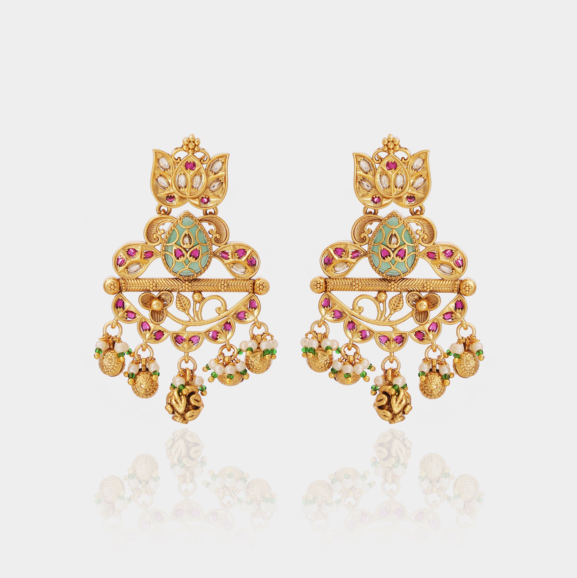 Ideal for pairing with bridal lehengas or traditional silk ensembles, these earrings bring heritage elegance and timeless sophistication to every ceremonial look.