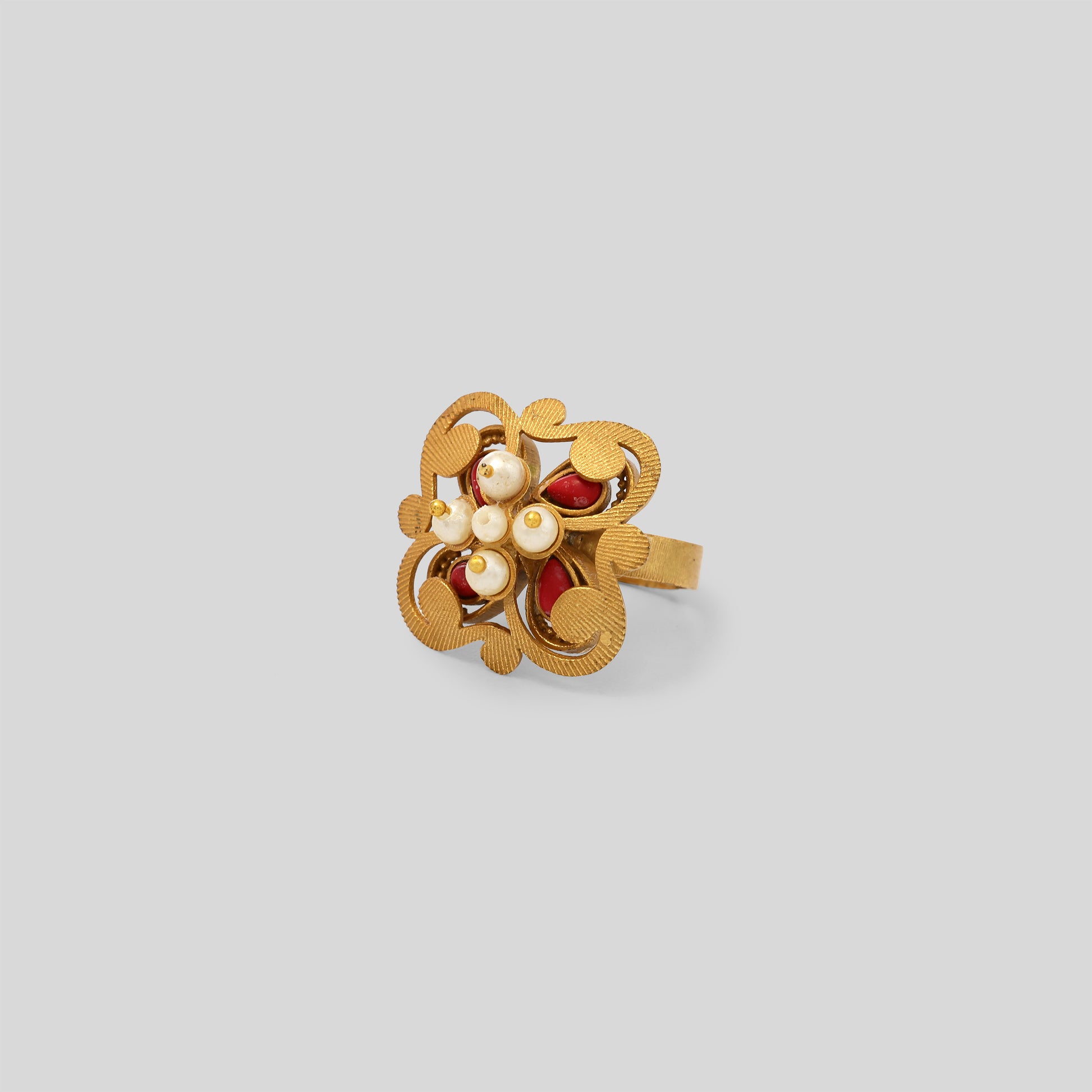 Graceful and delicately crafted, Pearl Bloom Floral Cocktail Ring is designed to capture timeless beauty. Featuring a radiant gold base adorned with a floral motif and luminous pearl detailing, this ring blends classic charm with vibrant colour accents.