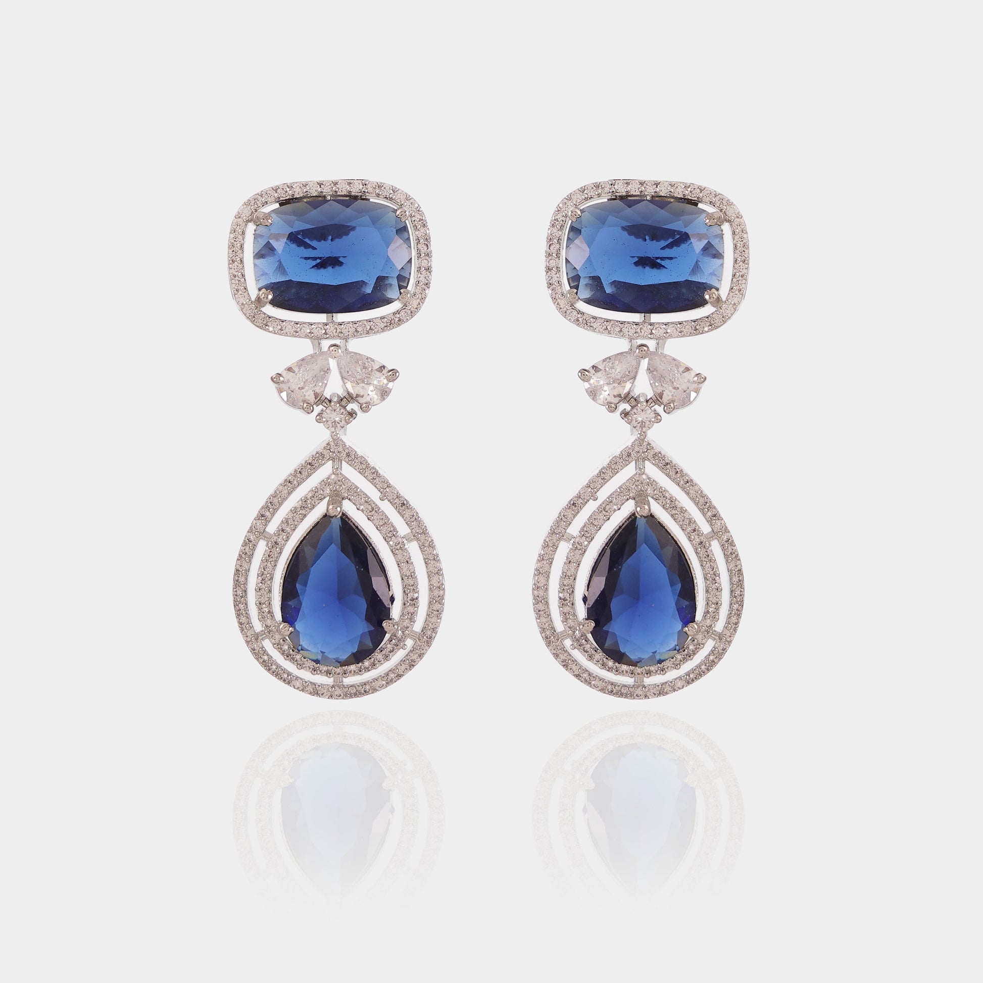 - Design: Diamond-Style Setting with Blue Sapphire-Tone Stones
